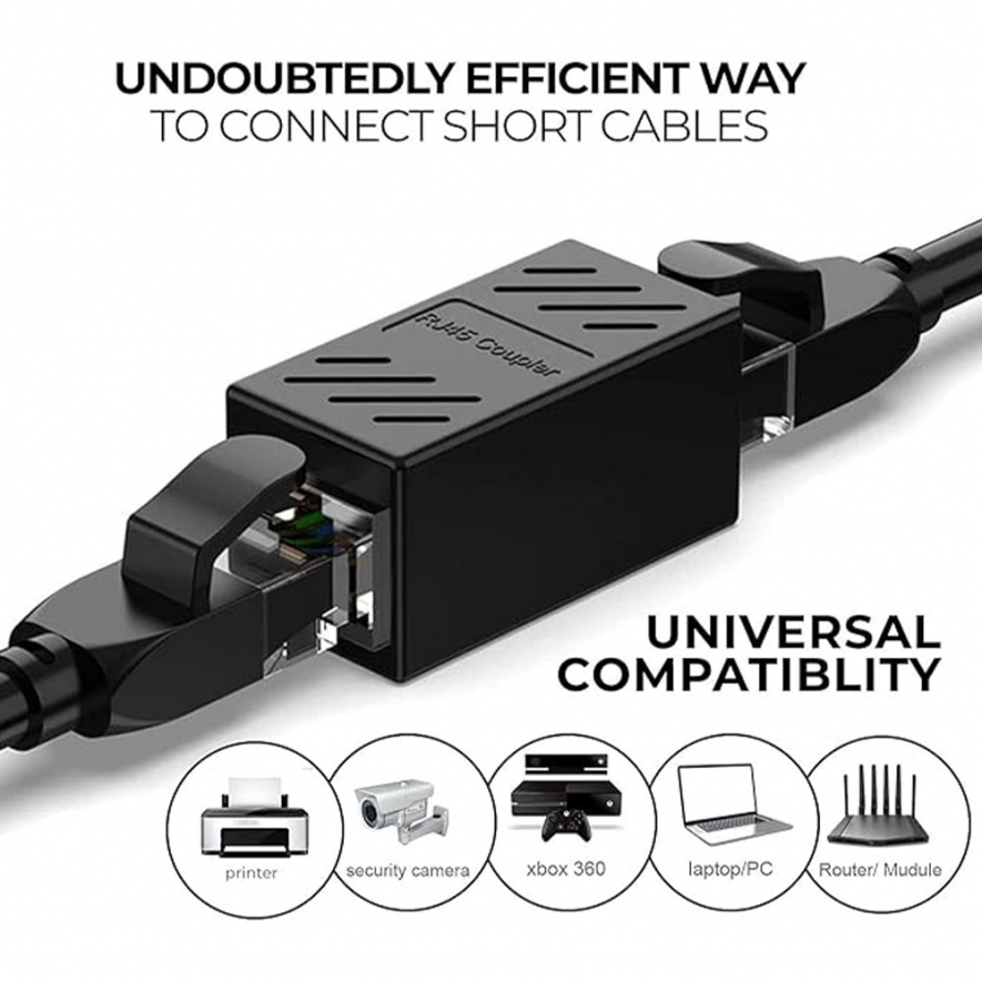 - Function:Connects Two RJ45 Cables For Seamless Network Extension.