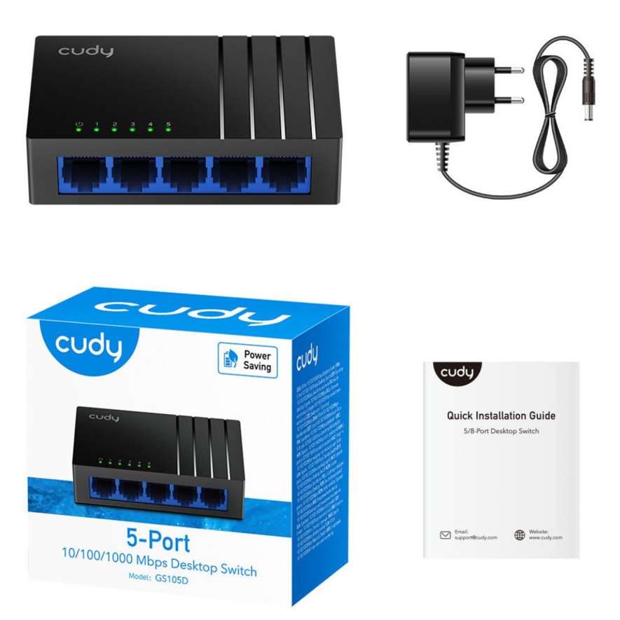 - The CUDY GS105D Is A Compact 5 Port Unmanaged Gigabit Ethernet Switch with 5×RJ45 10/100/1000 Mbps Ports.