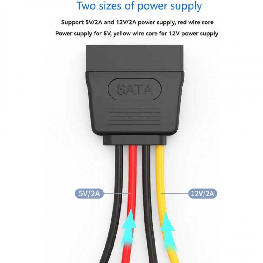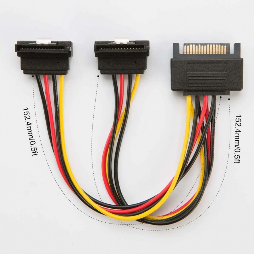 - 1 Male SATA Power Connector To 2 Female SATA Power Connectors.