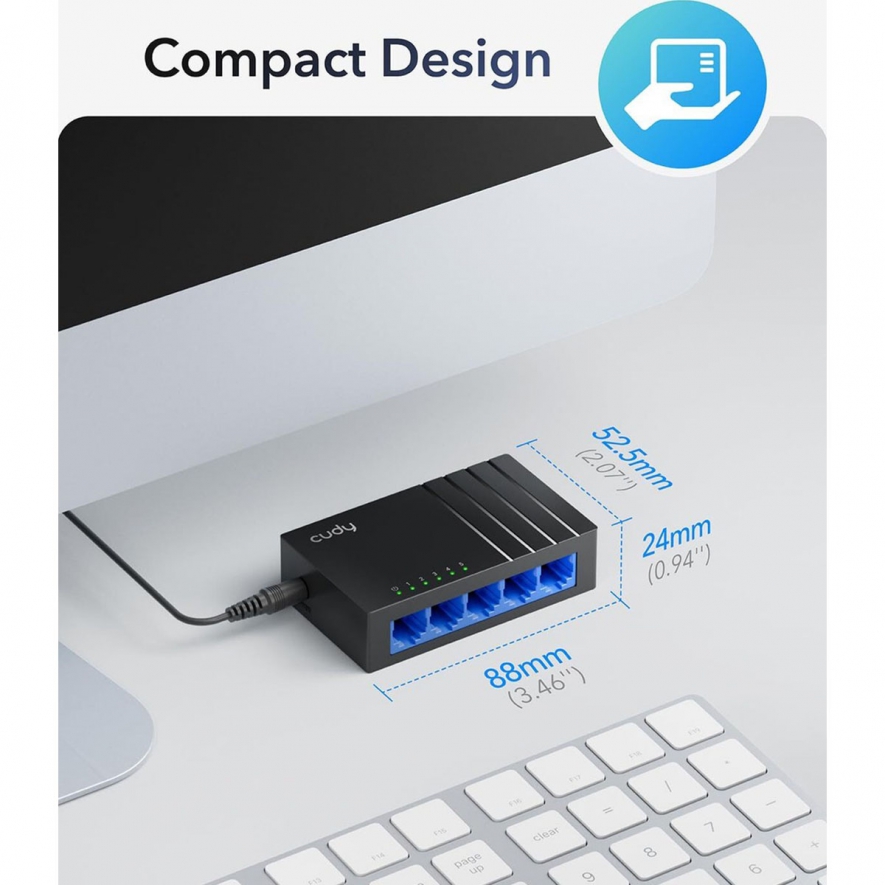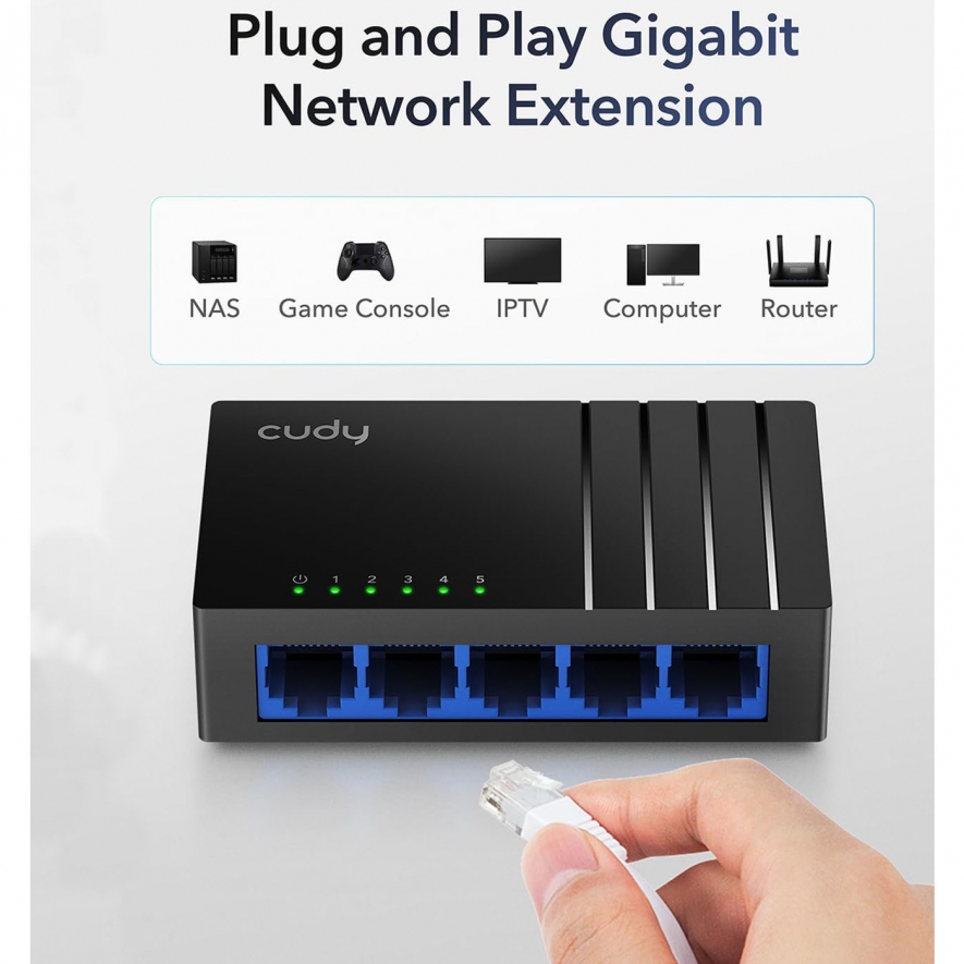 - The CUDY GS105D Is A Compact 5 Port Unmanaged Gigabit Ethernet Switch with 5×RJ45 10/100/1000 Mbps Ports.