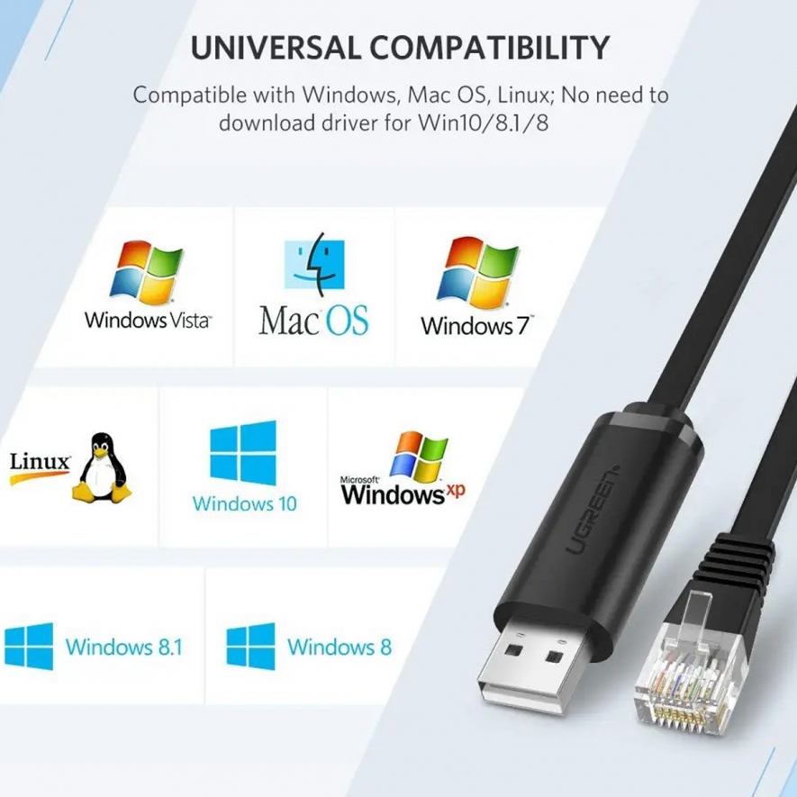 - UGREEN Console Cable 1.5m (50773) Is A High Quality USB To RJ45 Rollover Cable Designed For Connecting Computers To Network Devices Such As Routers,Switches And Firewalls For Configuration.It Ensures Stable Data Transmission And Plug And Play Convenience Without The Need For An External Adapter.