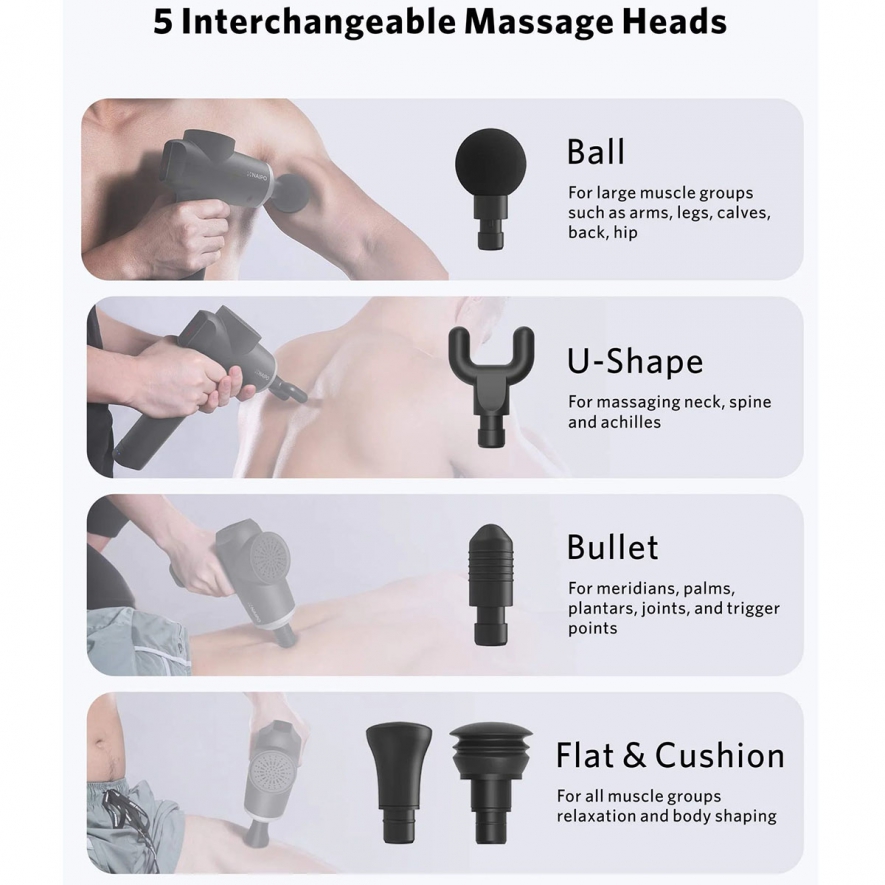 - A handheld Percussive Therapy Device Designed To Relieve Muscle Tension,Reduce Soreness And Improve Blood Circulation. Lightweight And Portable It Features Adjustable Speed Settings And Interchangeable Massage Heads For Targeted Deep Tissue Relief. Ideal For Athletes,Fitness Enthusiasts And Anyone Seeking Fast,Convenient Muscle Recovery.